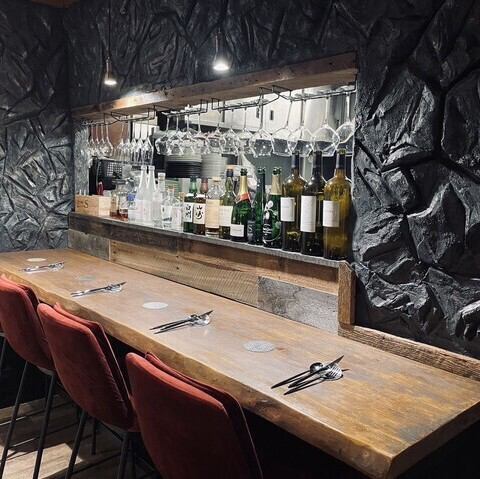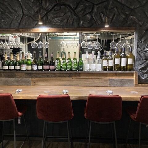 4名様までご利用可能なカウンター席をご用意しております。目の前にはワインがずらりと並び、お好きなワインを選ぶこともできます。
